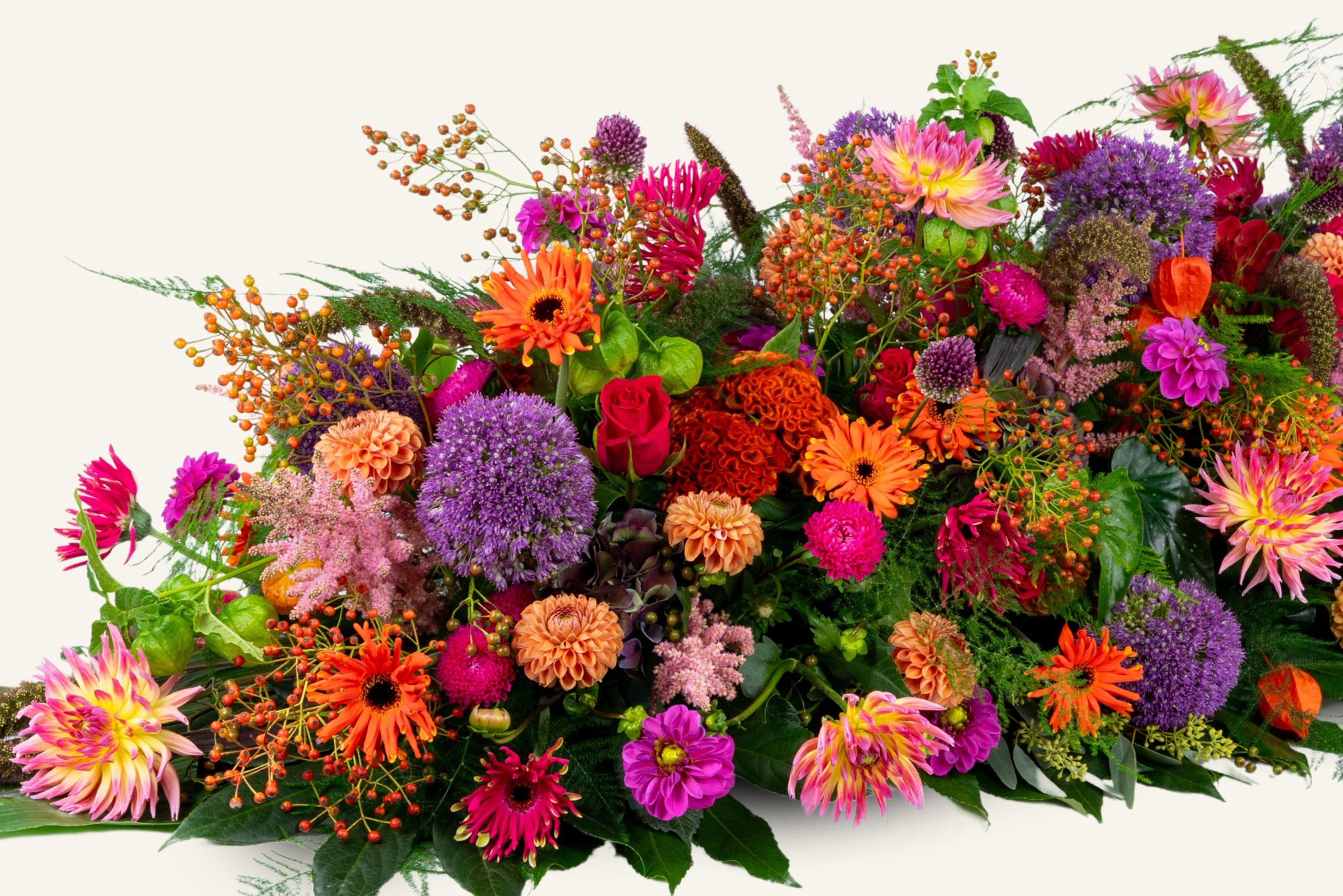 Wij werken met wat het seizoen ons geeft. Geen standaard boeketten, maar veldbloemen, losse stelen en spontane combinaties. Vandaag tulpen, morgen dahlia’s – wat er op dat moment mooi en vers is. Wij leveren prachtige bloemen van goede kwaliteit, tegen een scherpe prijs met een klantvriendelijke service. Ook zijn wij de specialist voor al uw boeketten, rouwbloemen, bruidsboeketten en (bedrijf) abonnementen.